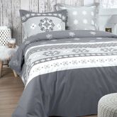 Très belle housse de couette MALLEVAL pour lit 2 personnes de dimensions 240x220cm en 100% coton au tissage très serré avec ses 2 taies d'oreillers 65x65 cm. Passez une douce nuit relaxante dans cette parure de lit en coton à l'esprit chalet de montagne!Information sur la housse de couette MALLEVAL: