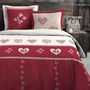 Très belle housse de couette MODANE rouge pour lit 2 personnes de dimensions 260x240cm en 100% coton au tissage très serré 57 fils avec ses 2 taies d'oreillers 63x63 cm. Passez une douce nuit relaxante dans cette parure de lit en coton à l'esprit chalet de montagne!Information sur la housse de couet