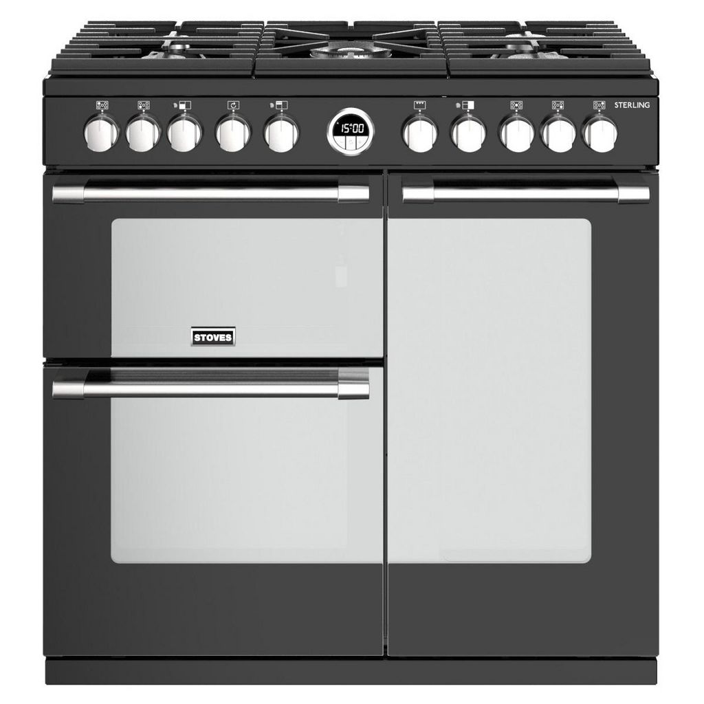 En savoir +Stoves STERS90DFBL Piano de cuisson gaz Sterling S Stoves STERS90DFBL doté d'une table de cuisson 5 foyers gaz avec 2 fours électriques + 1 maxi-gril. Four multifonctions 11 programmes dont le mode Pain et Pizza.