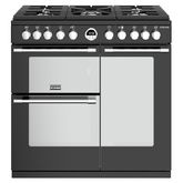 Stoves STERS90DFBL Piano de cuisson gaz Sterling S Stoves STERS90DFBL doté d'une table de cuisson 5 foyers gaz avec 2 fours électriques + 1 maxi-gril. Four multifonctions 11 programmes dont le mode Pain et Pizza. - Type de produit : Piano de cuisson dessus gaz.Indice d'efficacité énergétique (EEI ca