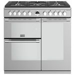 Stoves PSTERS90DFSS Piano de cuisson STERLING S 90 DFT Stoves PSTERS90DFSS avec Dessus gaz et 2 fours électriques + 1 maxi gril. Rails télescopiques double extension : Pour un accès facile aux plats. Fours de très grande capacité : maxi-grill de 37 L et grand four à chaleur pulsée de 94 L. Four multifonction 11 programmes : Des programmes permettant des modes de cuisson variés, dont le mode Pain et Pizza par exemple.