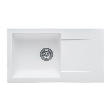 Evier a encastrer EINNA 1 bac en SMC, finition BLANC UNI - 17, dim. 78 * 43,5 cm, non percé, Ø bonde 90, livré avec bonde a panier, vidage manuel et siphon, emballage box