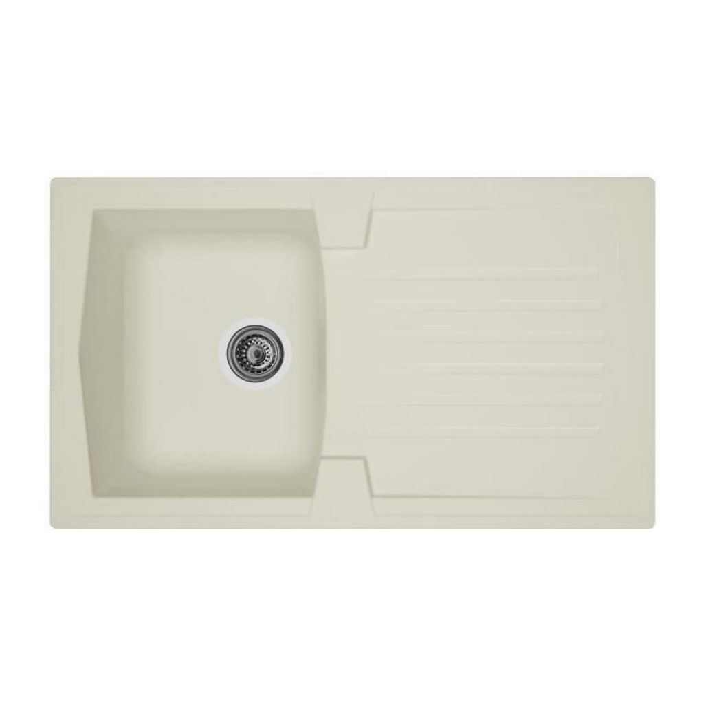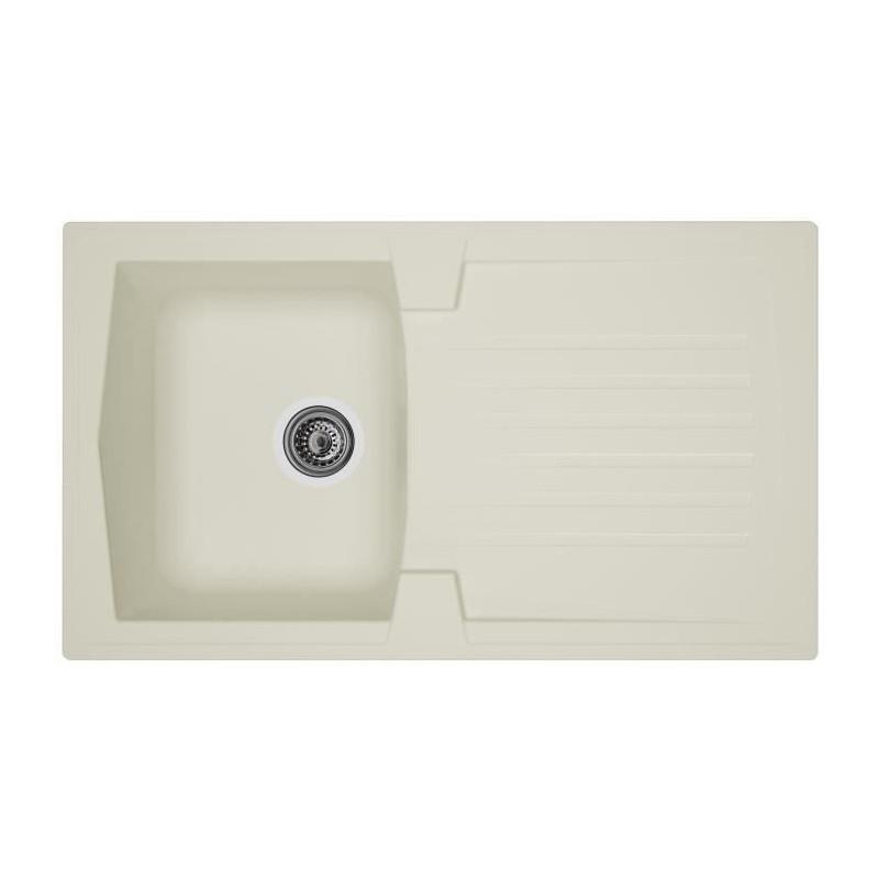 STRADOUR Evier cuisine a encastrer 1 bac + 1 egouttoir Arena - Resine - 86 x 50 cm - Blanc