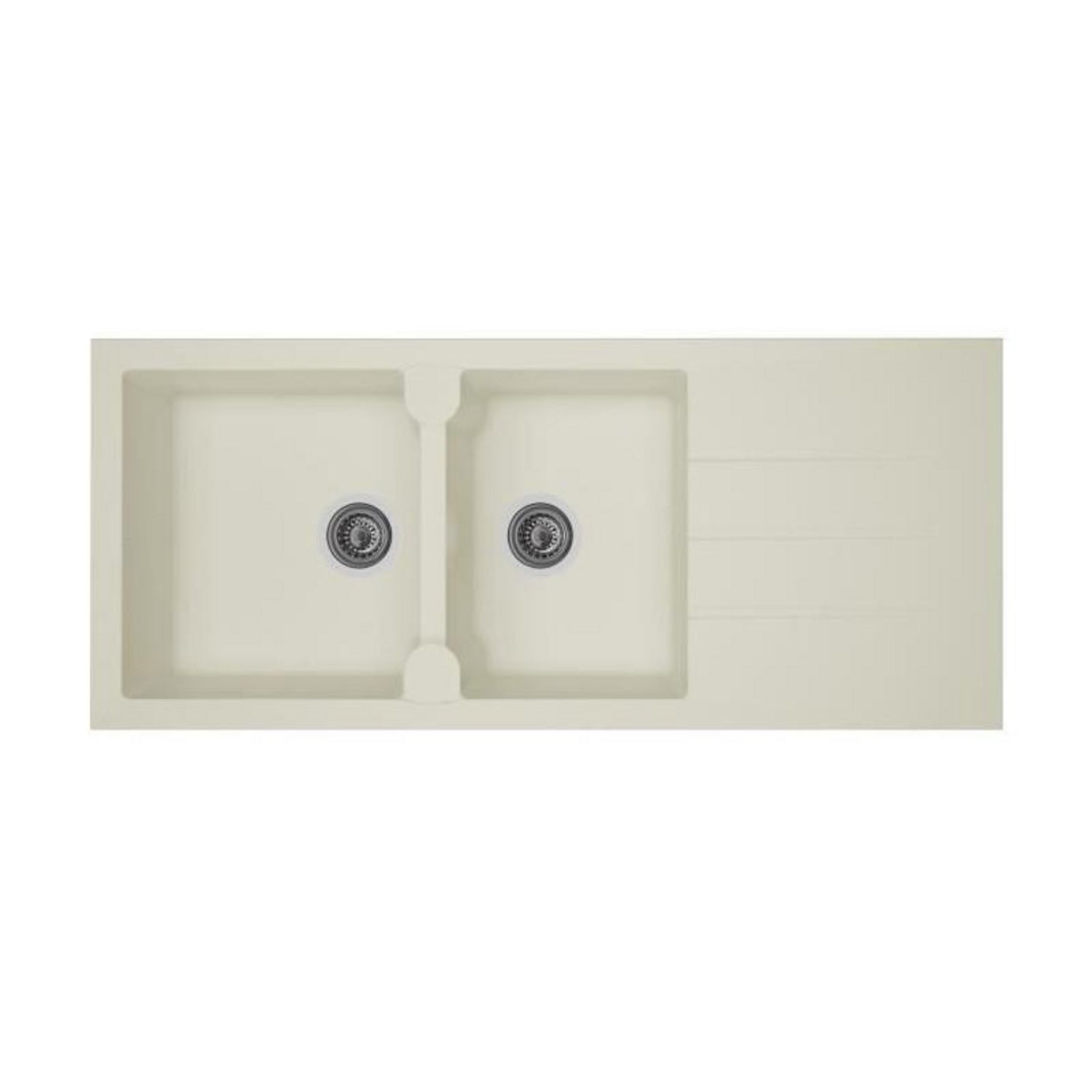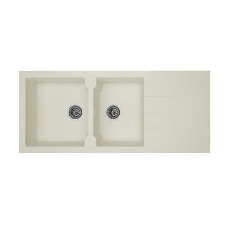 Les angles arrondis des bacs et l'égouttoir incliné assurent un confort d'utilisation quotidien. La structure renforcée résiste aux températures élevées et aux produits ménagers courants. Son fini blanc uni conserve son éclat dans le temps sans jaunissement.
