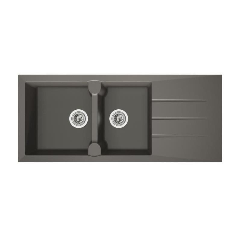 STRADOUR Evier cuisine a encastrer 2 bacs + 1 egouttoir Aloa - Resine - 116 x 50 cm - Gris beton