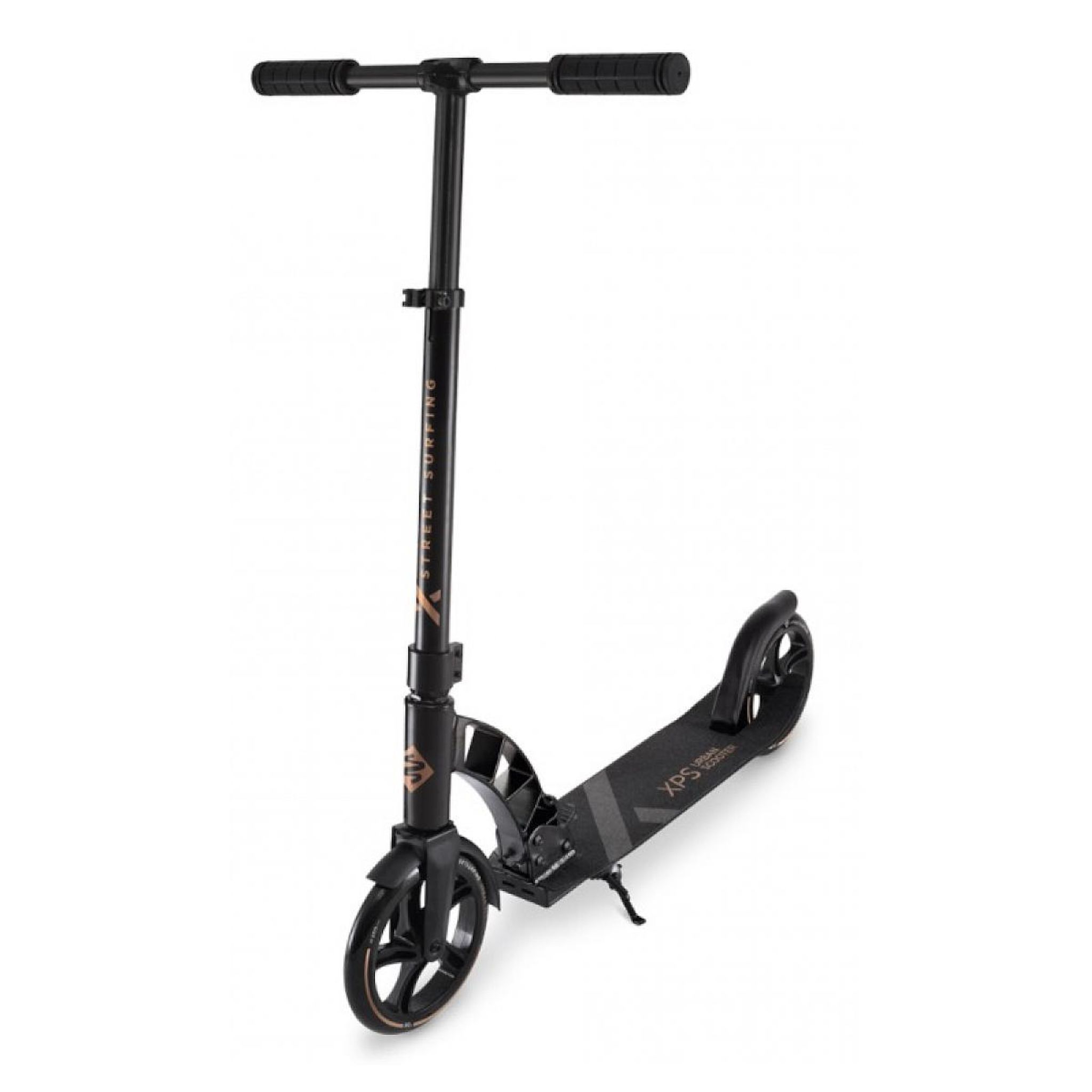 Bienvenue à la nouvelle génération de trottinette XPS. Cette version améliorée vous apporte une structure avec un nouveau design et renforcée, fidèle à tous les détails et caractéristiques qui sont la marque de fabrique de la gamme de trottinette de Street Surfing Urban. Tu ne gaspilleras plus ton temps avec le nouveau mécanisme de pliage en un clic, et le système facile de dépliage qui te permettra de démarrer en un rien de temps! Plateau en aluminium renforcé 21,6 x 5,5 Grip antidérapant Béquille Clamp double serrage Guidon réglable avec poignées en caoutchouc de haute qualité Frein arrière robuste Garde-boue de roue avant Mécanisme de pliage en un clic pour un rangement facile Roues 205 mm ABEC 7