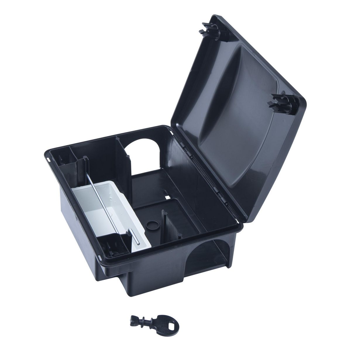 Caractéristiques techniques Sécurité renforcée: Fermeture à clé pour protéger les enfants et les animaux domestiques. Polyvalence d'utilisation: Compatible avec tous types d'appâts: blocs, pâtes, céréales, etc. Efficacité accrue: Augmente l'attractivité et la consommation des appâts en créant un env