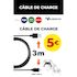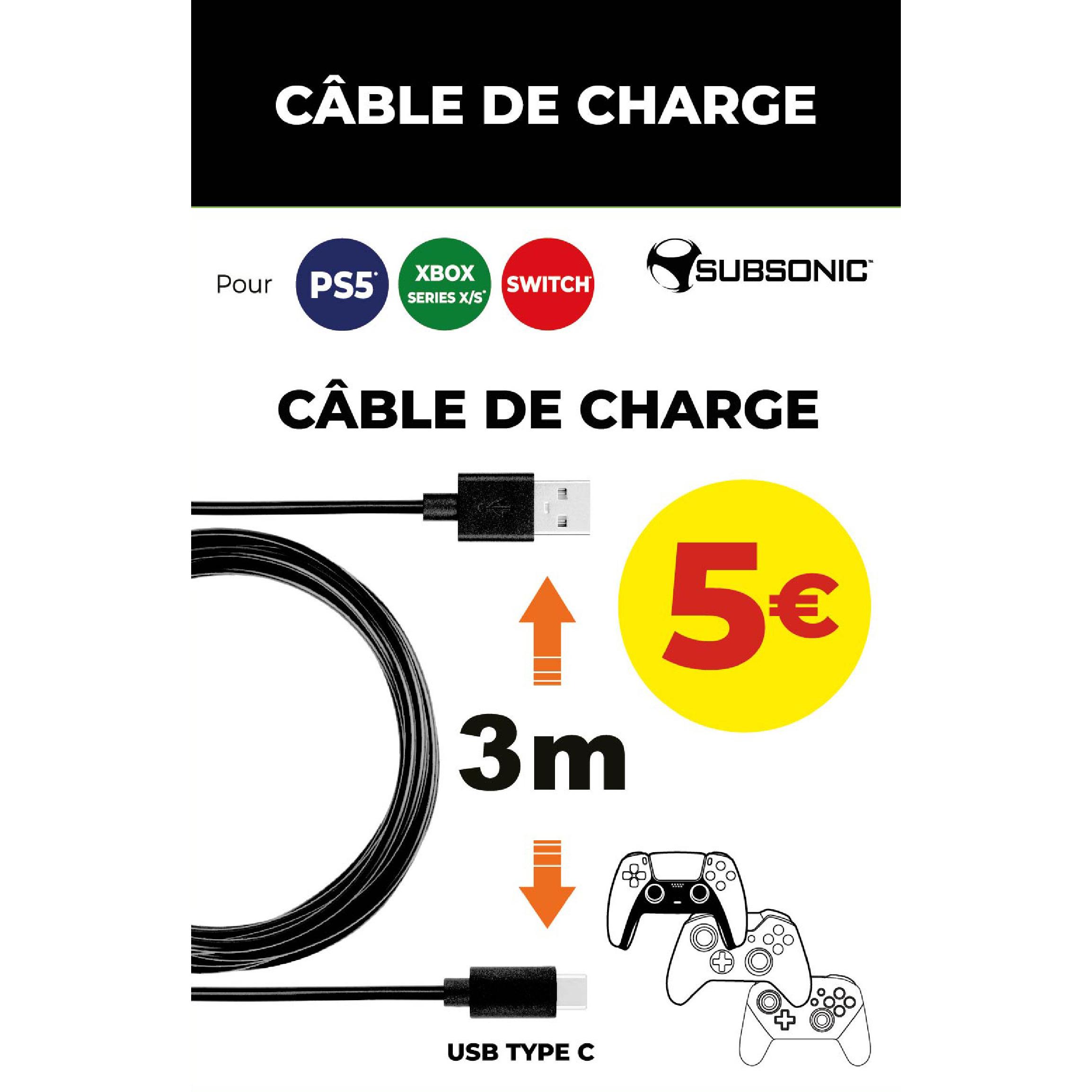 Câble de charge USB type C 3m PS5/ Xbox/ Switch