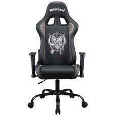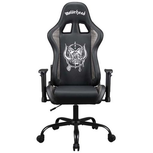 Pour réaliser cet opus, nous avons choisi un rembourrage de premier choix alliant durabilité et élégance. Conçu en mousse haute densité et revêtu de similicuir facile à entretenir, notre siège gaming arbore le logo Motörhead brodé sur la têtière et la célèbre mascotte Snaggletooth brodée en blanc sur fond noir sur le dossier. Notre siège gamer est également robuste grâce à sa structure en acier et dispose d'un vérin de alte 3 pour ajuster la hauteur en toute sécurité. Sa base en étoile en - heavy - métal avec 5 roulettes garantit une stabilité et une solidité exceptionnelles.