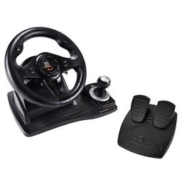 Ne perdez plus aucune courses avec le volant de course GS500 avec pédalier, palettes et levier de vitesse compatible PS4, Xbox One, PC, PS3 (tous jeux).