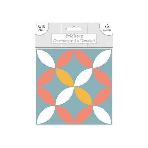 6 Stickers carreaux de ciment - 15 x 15 cm - Bleu, jaune et orange