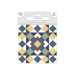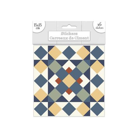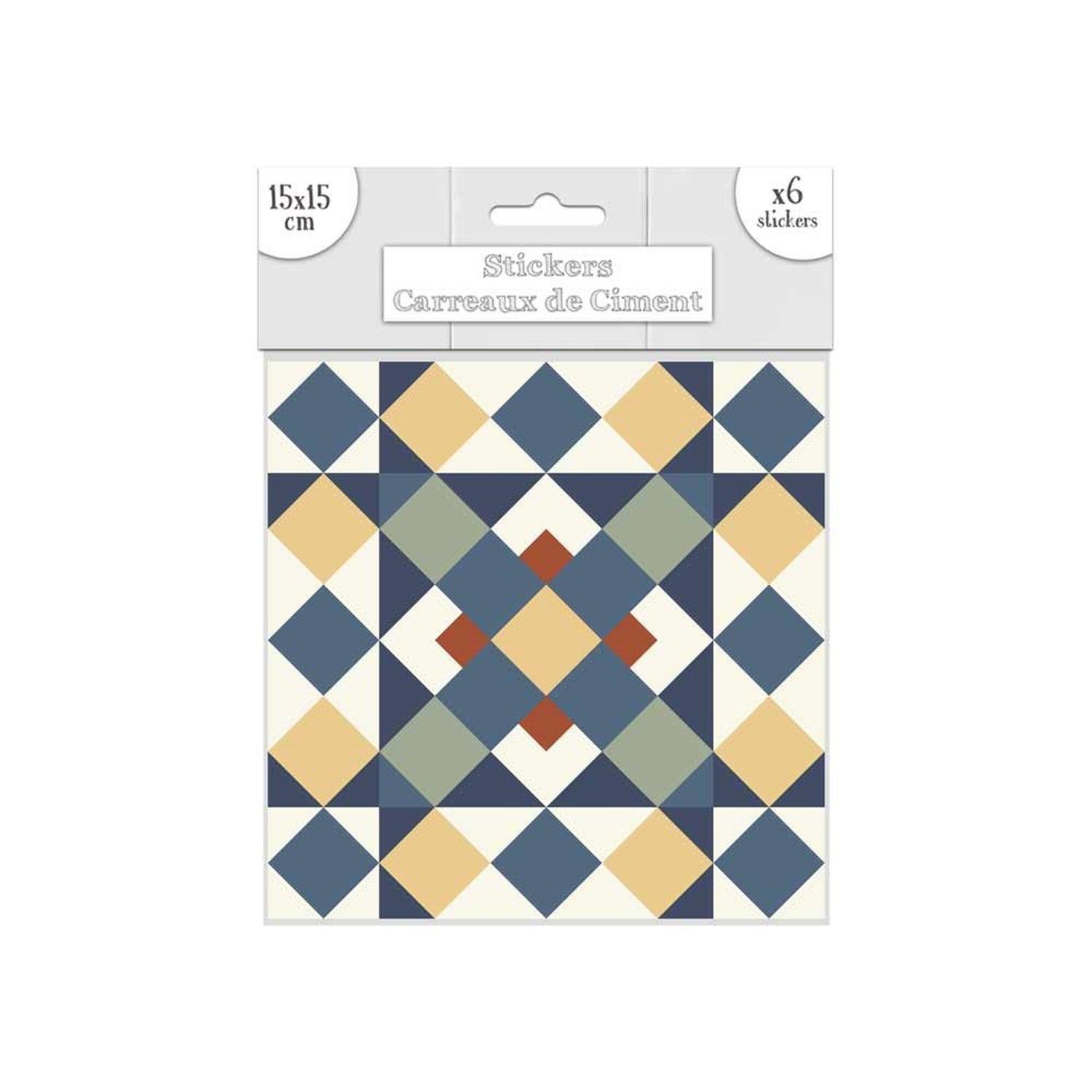 6 Stickers carreaux de ciment - 15 x 15 cm - Jaune et marron