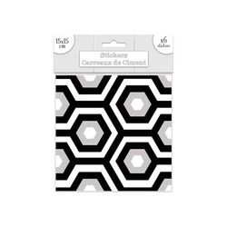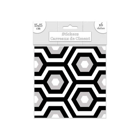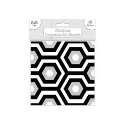 6 Stickers carreaux de ciment - 15 x 15 cm - Noir et blanc