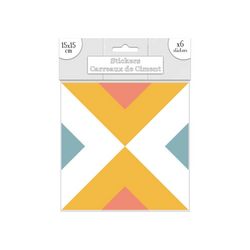 6 Stickers carreaux de ciment - 15 x 15 cm - Triangles Jaune et orange