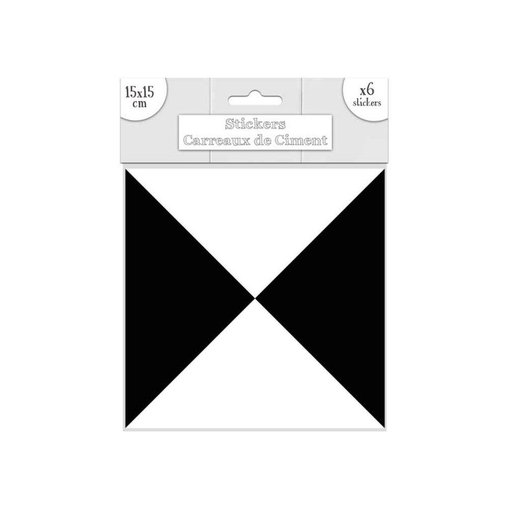 6 Stickers carreaux de ciment Motifs Triangle - 15 x 15 cm - Noir et blanc