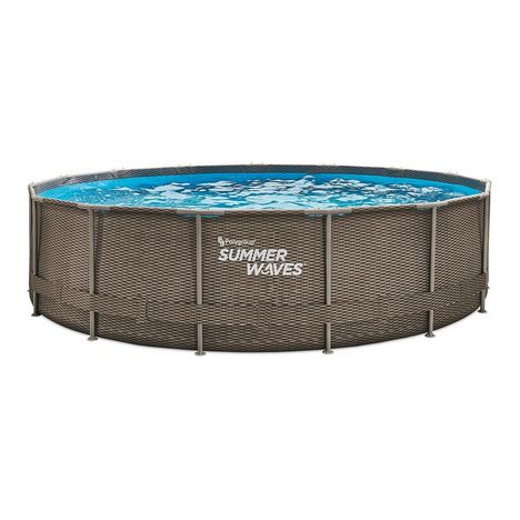 Piscine tubulaire ronde Active Frame Pool effet Rotin 4,57 x 1,06 cm - Summer WavesDimensions de la piscine :Diamètre : 4,57 mHauteur : 1,07 mHauteur d'eau : 0,90 mVolume d'eau : 15 m³Équipement inclus :Un épurateur à cartouche PX100 (3,8 m³/h) : pour filtrer l'eau de la piscine et conserver une pro