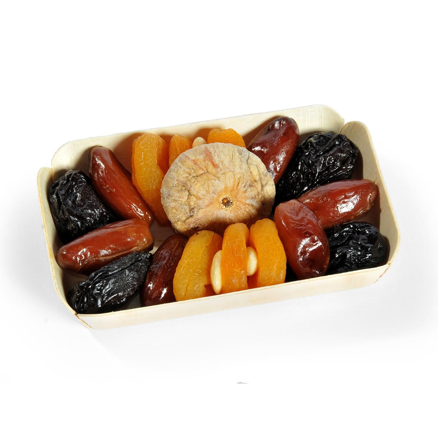 Savourez un assortiment festif et gourmand d'abricots secs, dattes Deglet Nour, figues séchées et pruneaux. Un incontournable des fêtes de fin d'année !