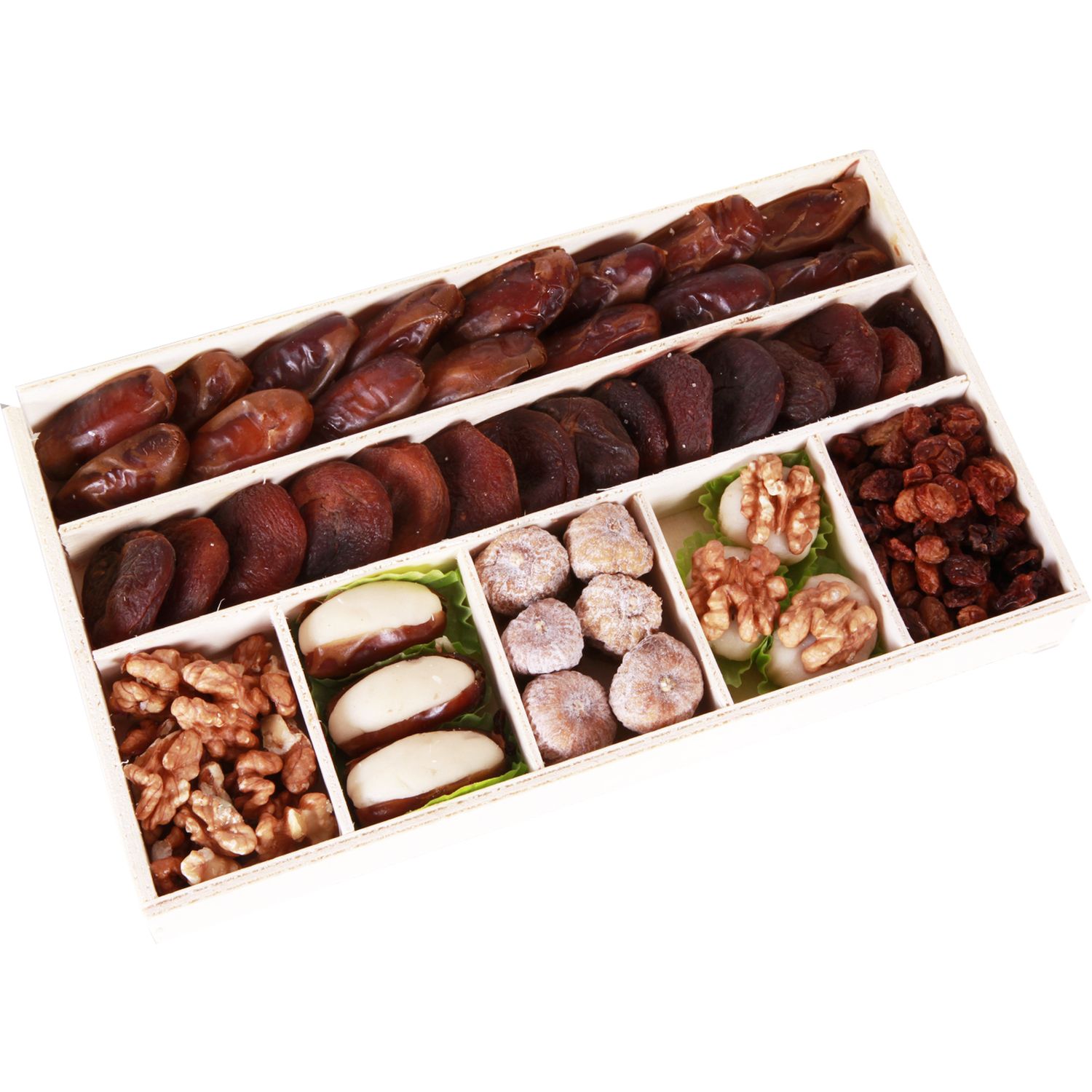Dattes Deglet Nour BIO*, Abricots secs BIO*, Mini-figues séchées BIO*, Raisins sultanines BIO*, Cernaux de NOIX BIO*, Dattes fourrées à la pâte d'AMANDES BIO*, Bouchées pâtes d'amande et Cernaux de NOIX BIO*