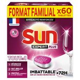 Sun n° 1 expert de l'efficacité ! Profitez de toute l'expertise Sun grâce aux tablettes lave-vaisselle Expert Plus dans son format de 60 lavages.