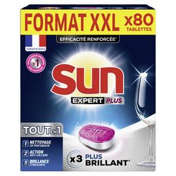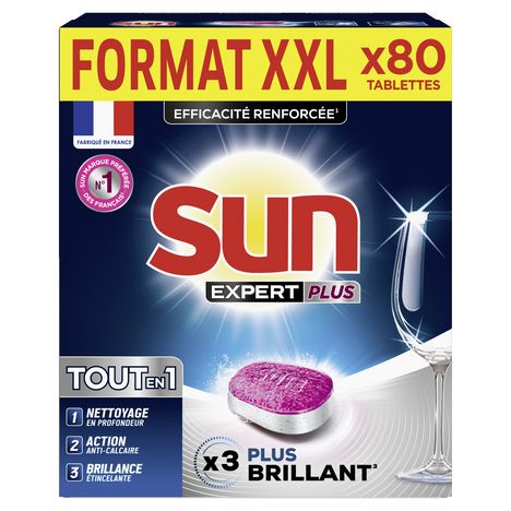 Placez la tablette dans le bac à produit, en évitant de la manipuler avec les mains humides. inutile d'ajouter du sel et du liquide de rinçage : leurs fonctions sont remplies par la formule Tout en 1. Pour une eau très calcaire (> 350FH), il est toutefois recommandé d'ajouter Sun Sel Régénérant. Nettoyez régulièrement les bras d'aspersion et vérifiez qu'ils peuvent tourner librement.