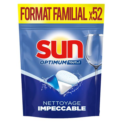 Les pastilles lave-vaisselle Sun Optimum Tout-en-1 vous assurent un nettoyage impeccable.