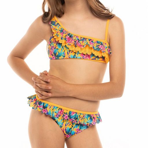 Maillot de Bain 2 pièces pour fille de la marque Sun Project ! Imprimé : fleurs Coloris : Jaune Composition : 80% polyamide , 20% élasthanne Les sous-vêtements et maillots de bains ne sont ni repris ni échangés, merci de votre compréhension !