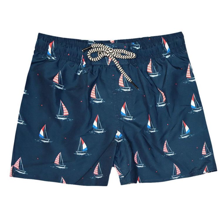 Short de bain pour Garçon de la marque Sun Project ! Couleur : Marine Coupe altique Ceinture élastique Cordons de serrage à la taille Imprimé bateaux Intérieur en filet 1 poche Composition : 100% polyester