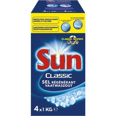 Utilisez Sun Sel Régénérant en complément de votre détergent classic et du liquide de rinçage. À utiliser également pour intensifier la puissance de lavage des produits Tout en 1 dans le cas d'une eau très dure.Remplissez votre bac à sel de Sel régénérant régulièrement : Eau dure : remplissez le compartiment toutes les 3 semaines.Eau moyennement dure : remplissez le compartiment toutes les 8 semaines.Eau douce : remplissez le compartiment toutes les 12 semaines.Si l'eau est très dure (>35°fH), nous vous recommandons d'augmenter le dosage du sel régénérant Sun dans votre bac à sel selon la notice de votre lave-vaisselle.