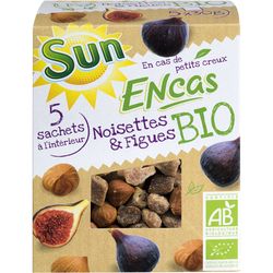Emportez partout avec vous un sachet SUN ENCAS BIO. Vous êtes pressé, vous avez faim, vous cherchez désespérément un goût bon et sain pour vous et vos enfants, vous avez besoin d'un petit coup de boost ?? Alors le mélange noisettes et figues Bio est fait pour vous.