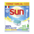 CONSEILS D'UTILISATION : - Conseil de dosage : 1 tablette par lavage. - Placez la tablette dans le bac à produit, en évitant de la manipuler avec des mains humides. - Sélectionnez un cycle de lavage à basse température (45°C ou 50°C) pour minimiser votre consommation d'eau et d'énergie et ainsi réduire la pollution de l'eau. - Inutile d'ajouter du sel et du liquide de rinçage : leurs fonctions sont remplies par la formule Tout en 1. Pour une eau très calcaire (>350FH), il est toutefois recommandé d'ajouter Sun Sel Régénérant. - Nettoyez régulièrement les bras d'aspersion et vérifiez qu'ils peuvent tourner librement. - Les articles suivants ne doivent pas être lavés en lave-vaisselle : bois, aluminium, cristal, porcelaine peinte à la main et articles ayant un décor doré ou argenté, certains types de plastique.