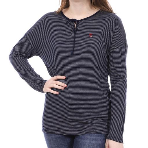 T-shirt à rayures pour femme de la marque Sun Valley ! Manches longues Col rond Lien au niveau du col Coloris : Bleu Motifs : Rayures Composition : 100% viscose