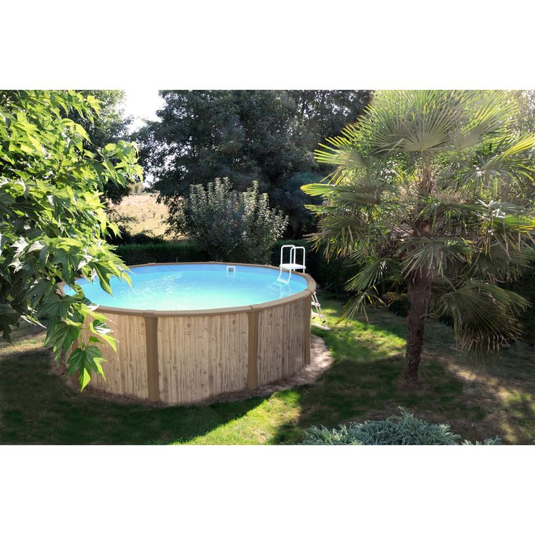 Cette piscine ronde en acier/résine décor imitation bois, d'un volume d'eau de 28.5m3, permet de profiter en famille ou entre amis d'un bassin facile à installer. Sa structure en acier d'une épaisseur de 40/100ème avec poteaux et margelles en résine injectée est adaptée pour un utilisation hors sol uniquement et une implantation sur un lit de sable stabilisé. Bassin et moyens d'accès conformes aux normes NF P90-316 et NF P90-317.
