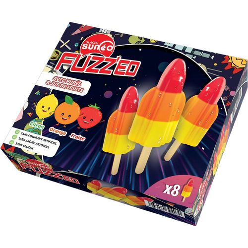 Eau, purée et jus de fruits issus de concentrés 21% (jus de pomme 7%, jus de citron 6%, jus d'orange 6%, purée de fraise 2%), sucre, sirop de glucose fructose, arômes naturels, acide citrique, stabilisants (gomme de guar), colorants (caroténoïdes, rocou, riboflavine), jus de betterave rouge.