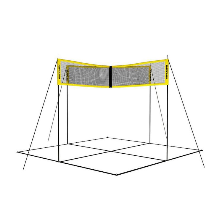Contient : SUNFLEX - FILET X-NET MULTI SPORT (jusqu'à 4 joueurs) Le sunflex X-NET permet une variante du volley-ball sur un terrain de jeu divisé en quatre terrains carrés de taille égale. Grâce au filet réglable en hauteur (1m / 1,5m / 2m), ce jeu de plein air convient à différents groupes d'âge et