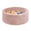 Contient : Piscine à balles Boaz 200 balles velours beige Housse en velours doux, amovible et lavable jusqu'à 30 °C. Montage facile. Convient aux enfants de 1 à 7 ans. Garantie de 2 ans. Dimensions Dimensions extérieures du bac à balles (Ø x H) : 90 x 30 cm. Dimensions intérieures du bac à balles (Ø