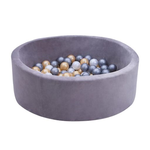 Contient : Piscine à balles Boaz 260 balles velours gris Comprend 260 balles de 7 cm de diamètre, disponibles en 3 couleurs (blanc, gris et doré). Le plateau à balles et les balles sont certifiés CE et sans BPA. Fabriqué en velours doux. Housse du plateau à balles amovible et lavable en machine jusq