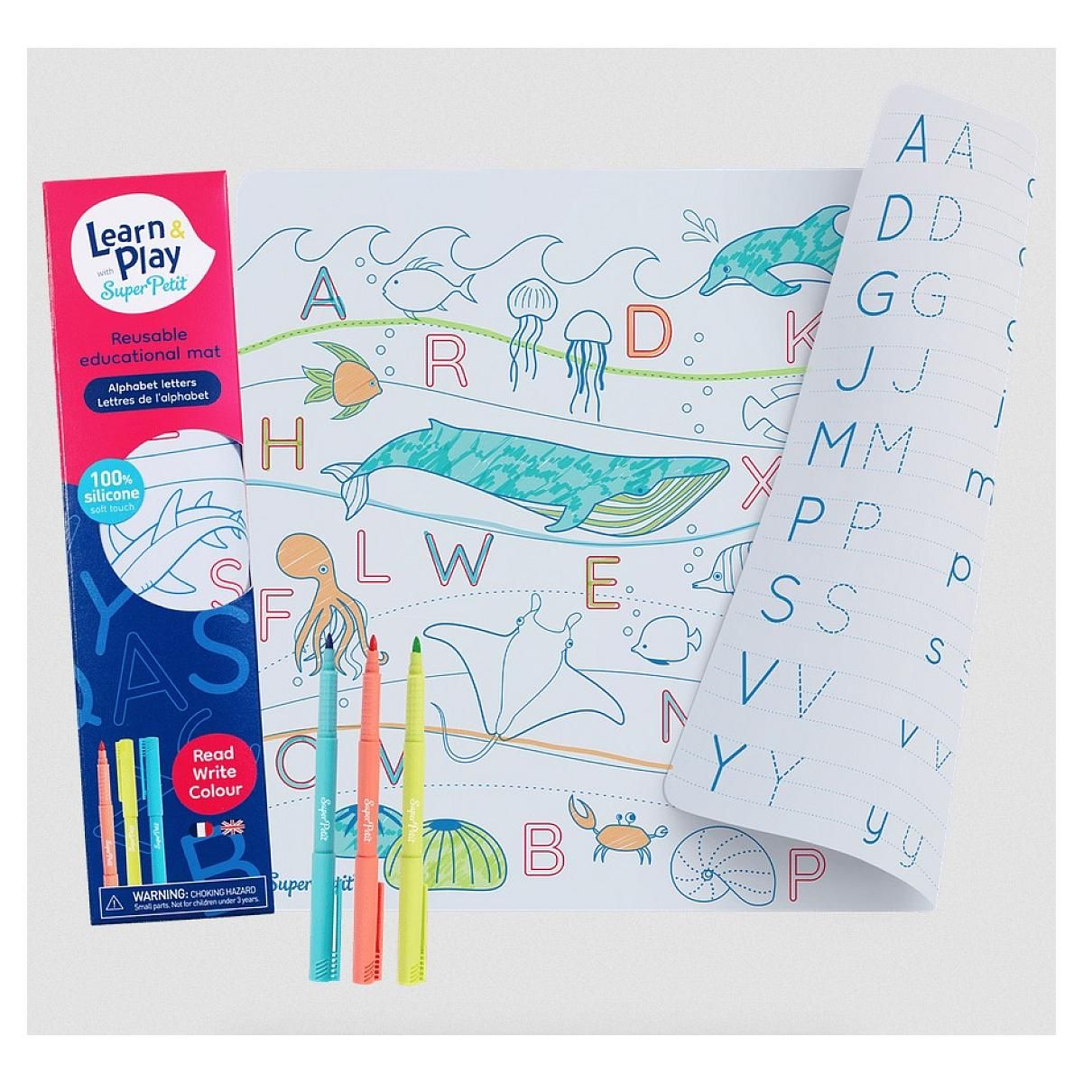 Cherche et trouve les lettres de l ?alphabets dissimulés parmi les animaux marins. Permet de mémoriser et tracer les lettres tout en s ?amusant. MOTRICITE FINE : pédagogie doucet et ludique pour apprendre les lettres de l'alphabet LEARN et PLAY : un set éducatif pour stimuler l'apprentissage et la mémoire tout en s'amusant. PEDAGOGIE POSITIVE se tromper, recommencer et réussir grâce à son support effaçable. REVERSIBLE ET CREATIF : un support malin et réversible à emporter partout pour s'amuser deux fois plus.