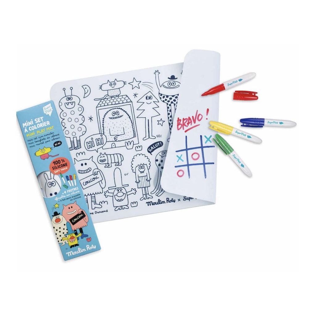 1 kit de coloriage pour enfant = 1 set en silicone + 4 feutres de couleurs FACILE A NETTOYER ? REUTILISABLE ? A PARTIR DE 3 ANS Poilus, colorés et complètement déjantés, les Schmouks débarquent chez SuperPetit pour un coloriage à l'infini ! Rencontre Pidou, Boubou, Mouni, Choukette et Chacha : une joyeuse bande aux yeux ronds et aux fourrures indomptables ! SUPER COLLAB : l'univers décalé et rigolo de Moulin Roty s'associe à SuperPetit pour une collab totalement déjantée ! LUDIQUE et CRÉATIF : Les Schoumks à la fourrure folle accompagnent les enfants dans les premiers apprentissages en favorisant l'expression et la créativité. POUR JEUNES ARTISTES : idéal pour faire patienter les plus jeunes en s'amusant, à la maison comme à l'extérieur. MATIÈRE AGRÉABLE ET DOUCE : 100% silicone contact alimentaire, sa surface non poreuse protège des bactéries. PRODUIT RESPONSABLE : Membre de 1% for the Planet, nous reversons 1% de toutes nos ventes à des associations engagées dans la défense de l'environnement.