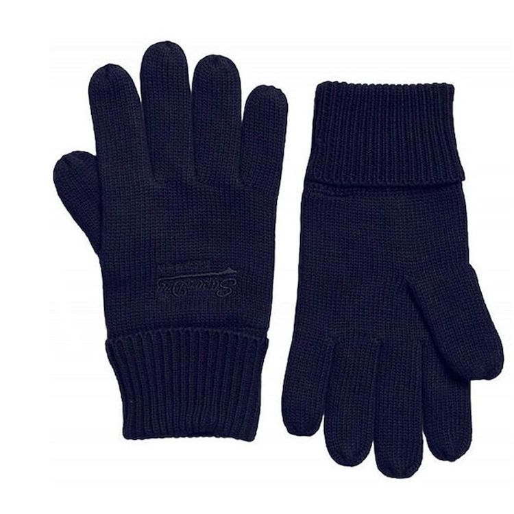 Optez pour ces gants Superdry à prix bas !Composition : 100% CotonMaille côteléePoignets à reversLogo Superdry brodéColoris : Marine