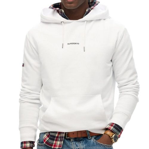 Craquez pour le sweat de la marque SUPERDRY !Coloris : Blanc CapucheManches longuesPoche kangourouBroderie SuperdryComposition : 87% Cotton / 13% Polyester