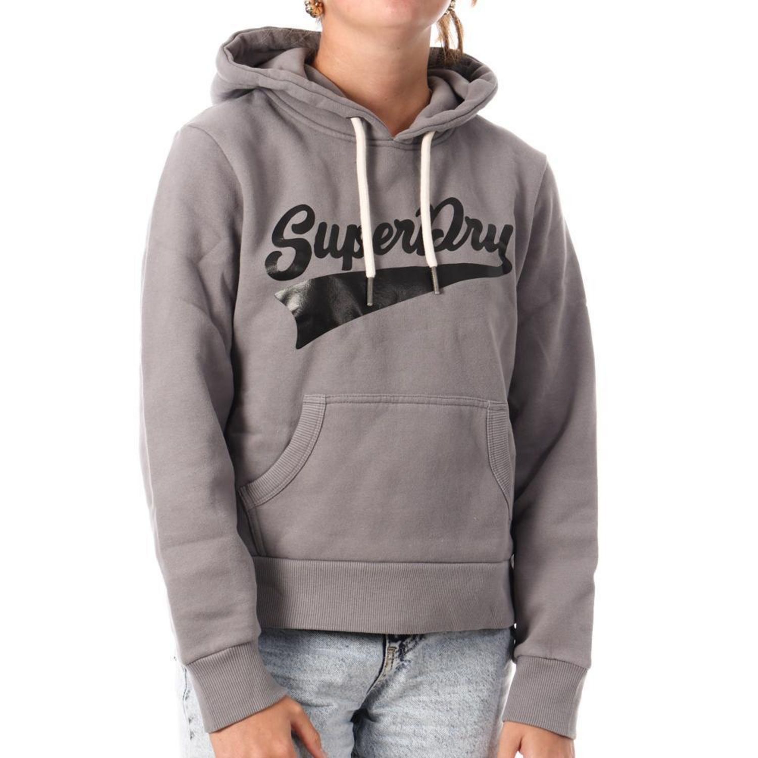 Craquez pour le sweat femme Superdry !Manches longuesCapucheColoris : Gris1 poche kangourouComposition : 60% Coton / 40% Polyester