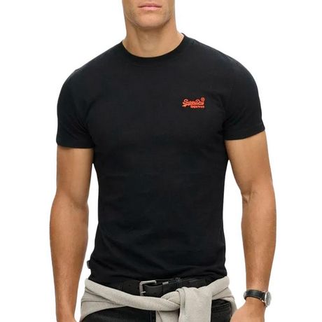 Découvrez ce t-shirt homme de la marque Superdry ! Couleur : NoirCoupe altique Col rond Manches courtes Logo Superdry sur la poitrine Composition : 100% coton