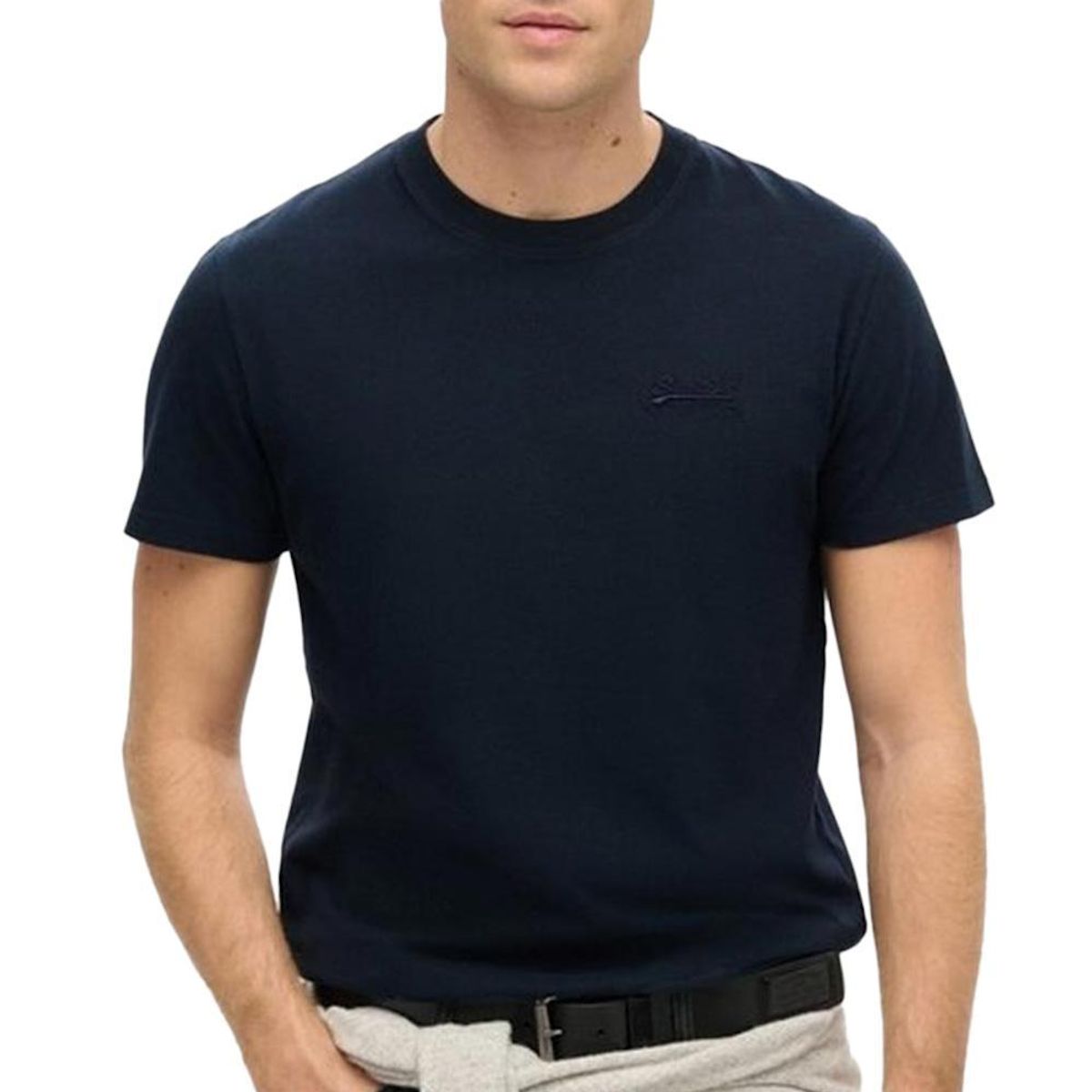 Découvrez ce t-shirt homme de la marque Superdry !Couleur : Marine Coupe altiqueCol rondManches courtesLogo Superdry sur la poitrineComposition : 100% coton