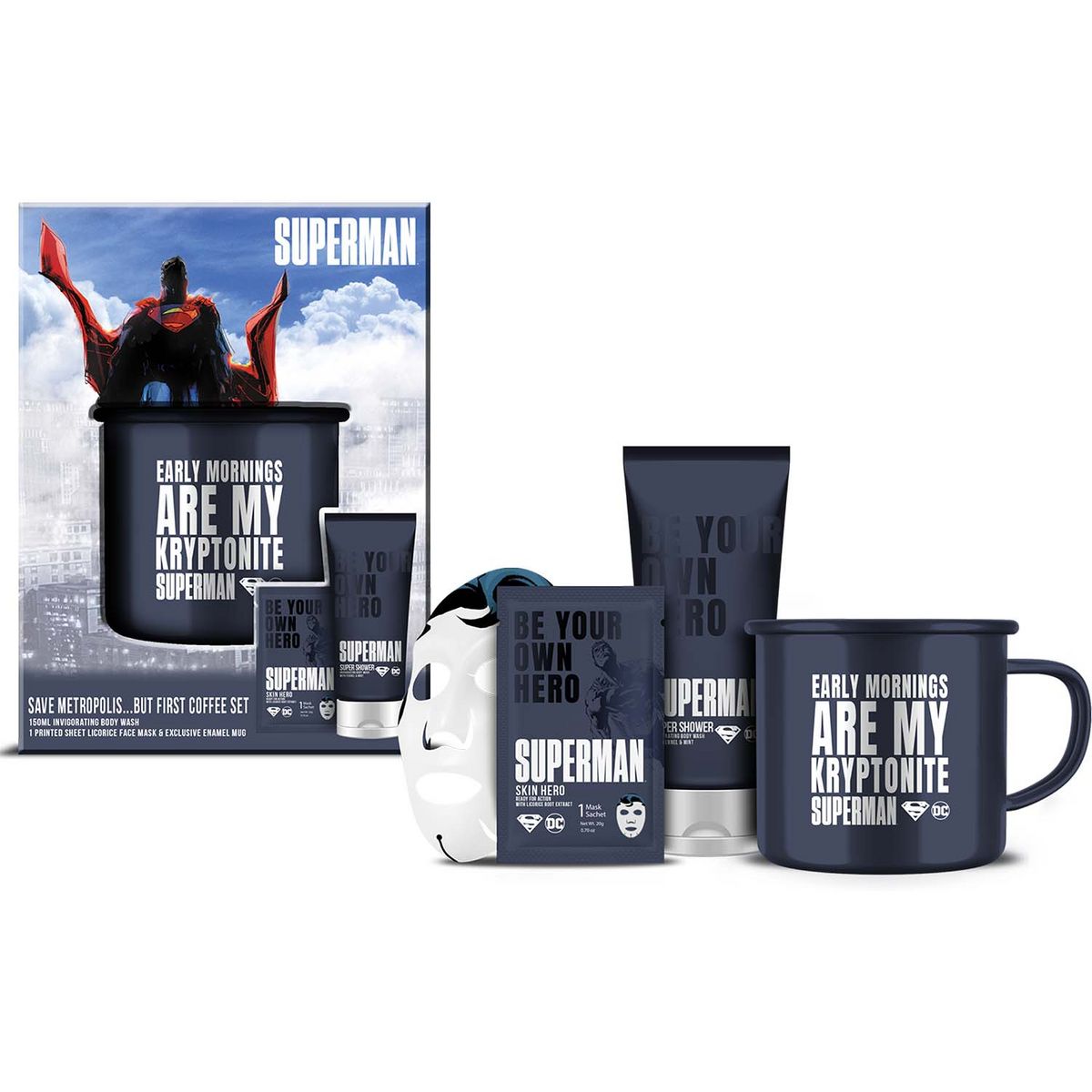 Ce coffret contient : - Un gel douche 150ml - Un masque tissu pour le visage - Un mug.