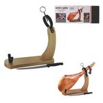 Découvrez le support jambon avec couteau lame 21.5cm en acier inoxydable ! Ce support à jambon vous permettra de découper proprement votre jambon tout en décorant votre cuisine. Manche avec garde de sécurité. Ce support à jambon est livré avec son couteau, ce qui permet une découpe optimale pour une dégustation savoureuse garantit ! Non compatible au lave-vaisselle.