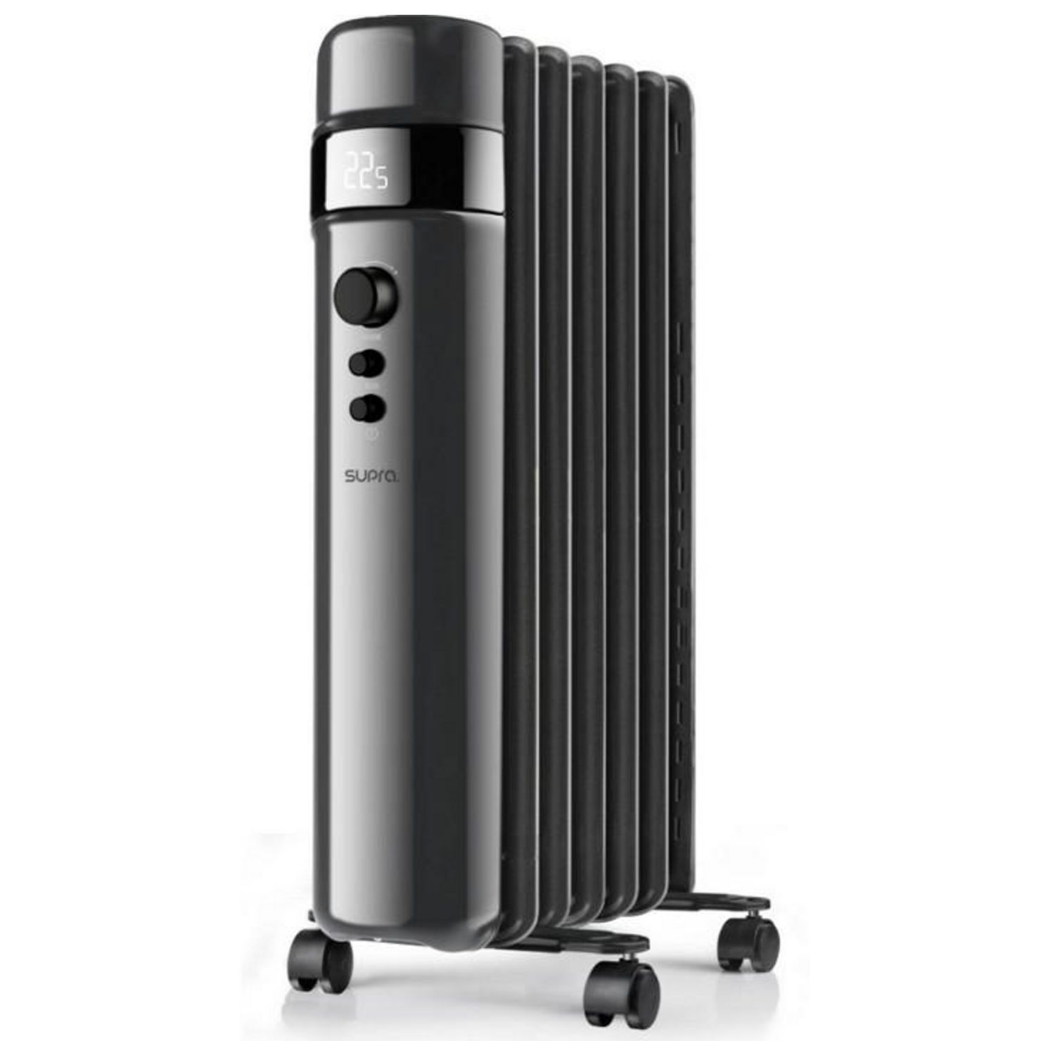 Supra OREANOIR2500 Radiateur bain d'huile Supra OREANOIR2500 doté d'un écran numérique avec indication de la température et la durée de fonctionnement. Un seul et unique bouton pour configurer la température souhaitée, la puissance et la minuterie : Une simple rotation et un appui pour confirmer les