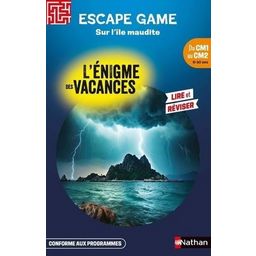 Un Escape Game pour réviser le programme de CM1 pendant les vacances ! Résous les énigmes et trouve les indices qui permettront à nos héros de regagner la côte sains et saufs ! Gwen, Fatou, Malo et Ryan veulent faire rimer vacanciers et aventuriers . Ils décident d'aller explorer l'île Gourien. D'après la légende, elle serait hantée par le fantôme d'un marin fait prisonnier sur l'île... Mais une fois arrivés sur place, les enfants se retrouvent piégés par la marée haute. Comment vont-ils réussir à s'échapper de cette île menaçante et effrayante ? Un cahier de vacances ludique et original qui associe un roman palpitant et des activités de révisions : pour faire avancer l'histoire, l'enfant doit résoudre des énigmes sous forme d'exercices. Un cahier de vacances du CM1 au CM2, pour les enfants de 9-10 ans L'Enigme des vacances : la collection n°1 pour lire et réviser ! Participe à une aventure palpitante et aide les héros à s'évader grâce à : des jeux sur l'essentiel du programme en maths, français, histoire-géo et sciences pour avancer dans l'histoire des corrigés pour un travail en complète autonomie des rappels de cours sur les notions abordées dans l'ouvrage