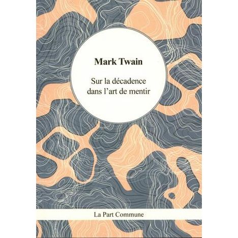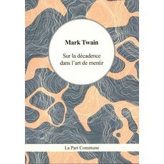 Sur la décadence dans l'art de mentir se présente sous la forme d'un petit bréviaire, d'un manuel de politique, où Twain dresse une critique à peine voilée des usages en France. Le Meurtre de Jules César en épisodes est caractéristique de l'esprit de Mark Twain, habile à créer une situation absurde à partir d'un fait réel. Dans le diptyque Histoire du méchant / bon petit garçon, il déploie tout un arsenal d'ironie et d'humour noir. Il raille le personnage de Jacob Blivens, enfant modèle, assoiffé de reconnaissance mais aveuglé par l'orgueil. Twain parsème le récit d'injustice et crée une situation où le décalage entre la fiction (les livres lus par Jacob) et la réalité (ce que vit Jacob) rend bien difficile de savoir quelle morale tirer... Considéré comme le premier écrivain américain, Mark Twain demeure souvent alté au rayon des livres pour la jeunesse. Pourtant, si une partie de son oeuvre oscille entre souvenirs, inquiétude puritaine, humour, ironie, esprit de contestation et préoccupation démocratique, la seconde partie, sans doute inspirée par son expérience de journaliste et ses voyages, questionne les excès de la civilisation et la notion de morale. Mark Twain s'éteint dans le Connecticut le 21 avril 1910. Contes choisis, traduction de Gabriel de Lautrec, Paris, Nelson Editions, 1900. Gabriel de Lautrec dédie l'ouvrage à Henri Gauthier Villars Willy . Né le 30 novembre 1835 dans le Missouri, Samuel Langhorne Clemens doit son pseudonyme de Mark Twain à son activité de pilote de bateaux à aubes sur le Mississippi ( mark twain signifie deux brasses de fond). Le fleuve occupe une place importante dans sa vie comme dans son oeuvre, il en présente par exemple une vision édénique dans Vie sur le Mississippi (1883). Les Aventures de Tom Sawyer (1876) et Les Aventures d'Huckleberry Finn (1885) lui valent une renommée intemporelle. Mais Mark Twain se distingue avant tout par son humour.