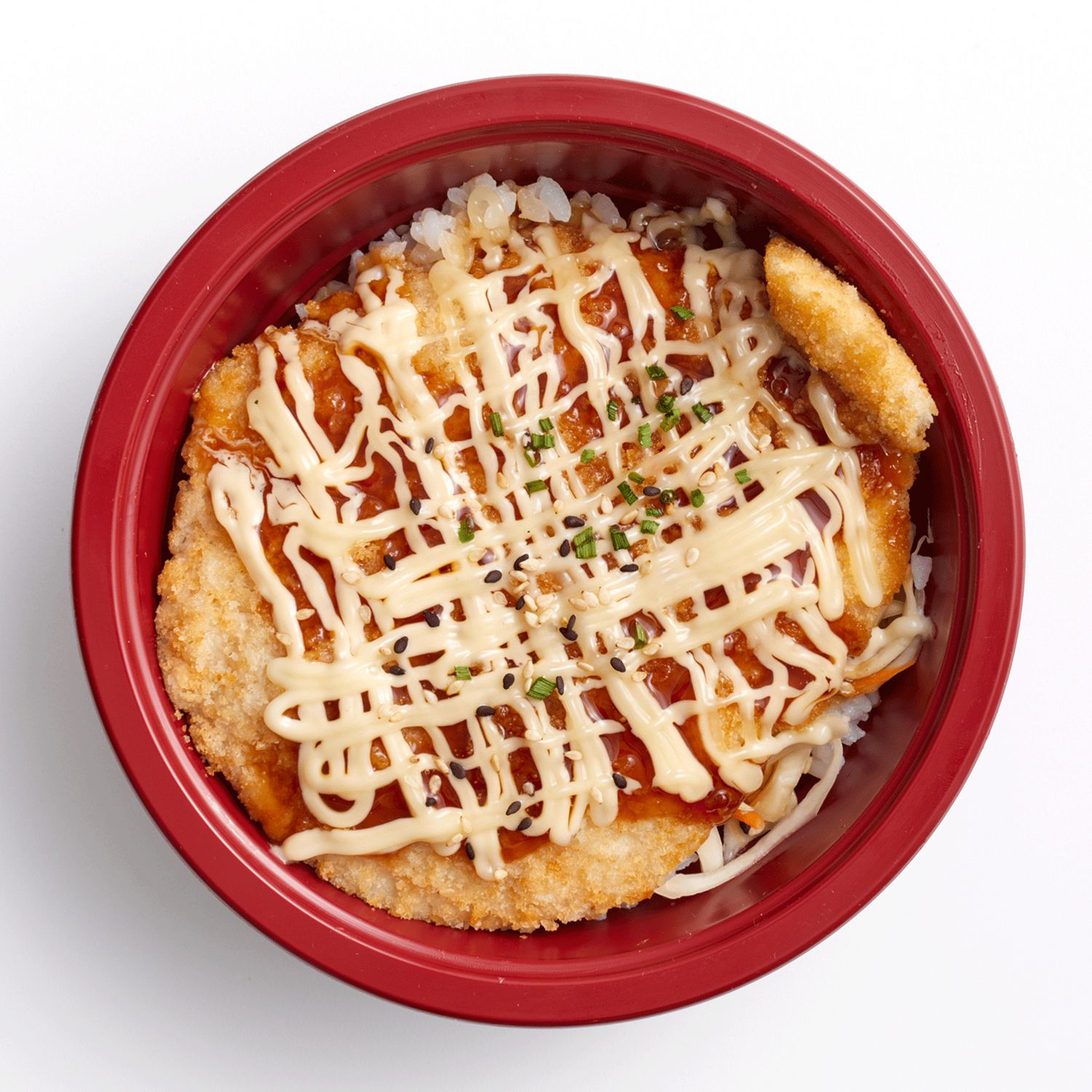 DONBURI POULET KATSU: Riz, préparation de poulet frit et salade de choux