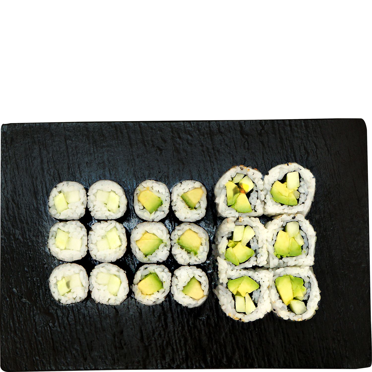 6 Maki avocat, 6 Maki concombre, 6 California végétarien